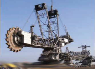 圖(5)輪斗挖掘機,作業量大,磨損量也大,世界上最大的輪斗挖掘機重達4.5萬噸,也是耐磨鋼板用量比較大的設備