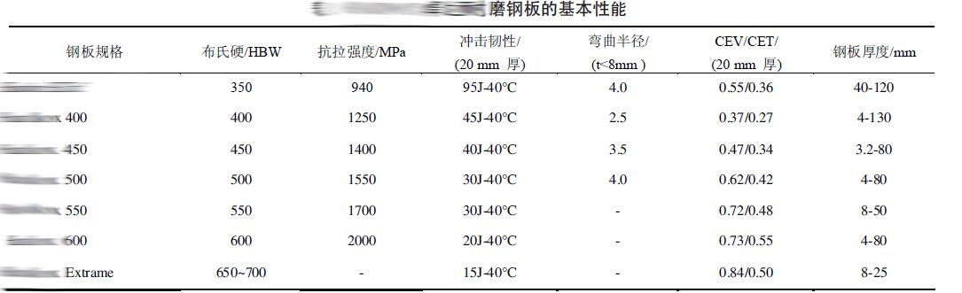 1.2 HARDOX 悍達耐磨鋼板綜合性能和規格悍達耐磨鋼板HARDOX 的綜合性能, 主要包括力學性能(硬度、強度、低溫沖擊韌性)、加工性能(切割、彎曲、焊接、鉆孔)、表面性能以及厚度公差。HARDOX 悍達耐磨鋼板的詳細技術參數,可參見產品信息手冊,其基本性能列于表1。