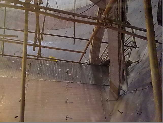 設備內壁存在鐵銹和松散的浮灰、油漆等雜物,先用打磨機等工具將鐵銹和浮灰等雜物清理干凈,以便焊鋼基板。