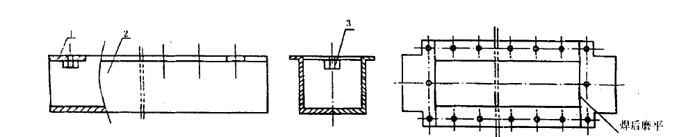 為制作方便,除螺母可將管體分成兩種零件, 每件完成后再焊接組裝。表面焊縫要磨平。按位 置鉆孔后焊螺母。螺母選用GB52-76六角螺母為好 (見圖3)。